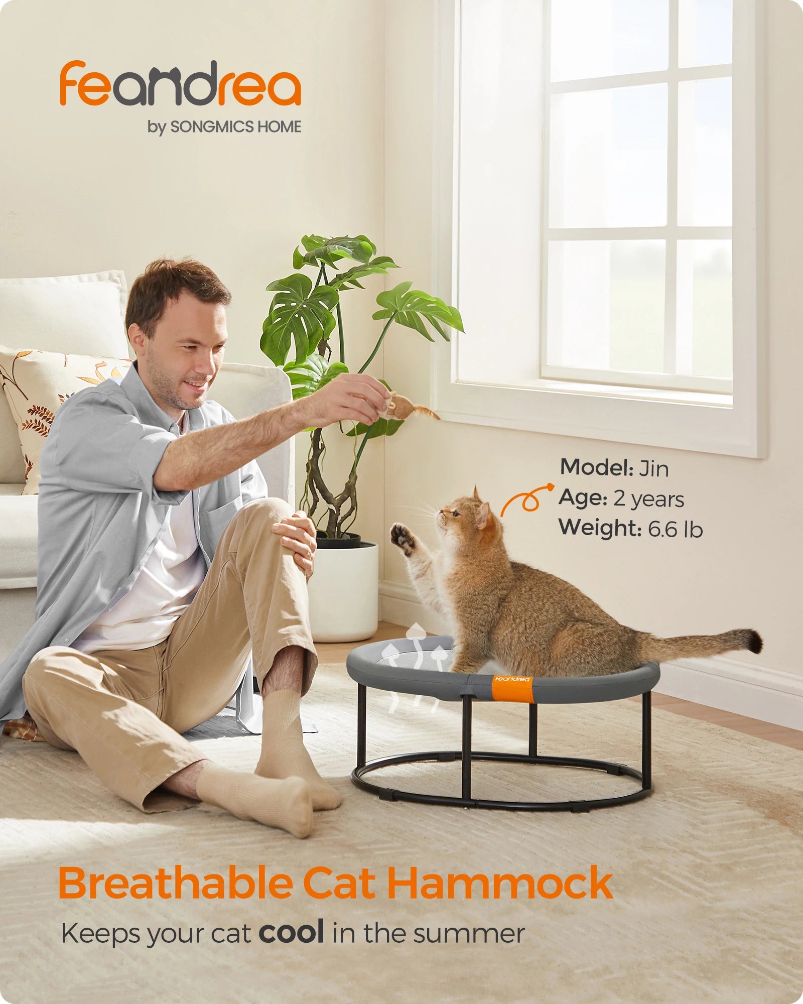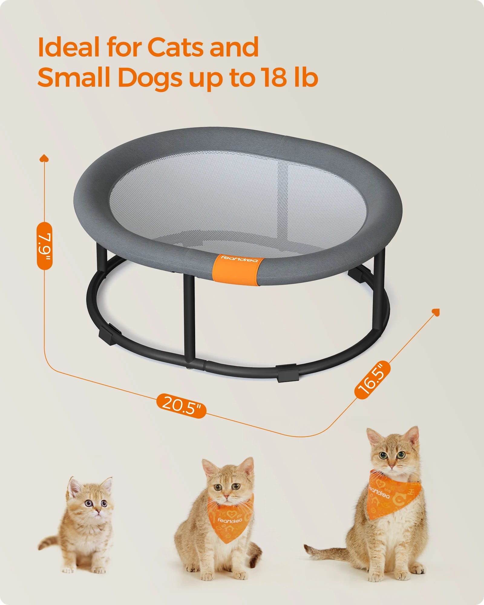 [Robust, Stable, Durable] Supported by a steel frame with protective foot pads, the elevated cat bed is strong, stable, and won't easily slide around. The quality synthetic fabric is tear-resistant, so sharp claws or gnawing dogs won't rip it